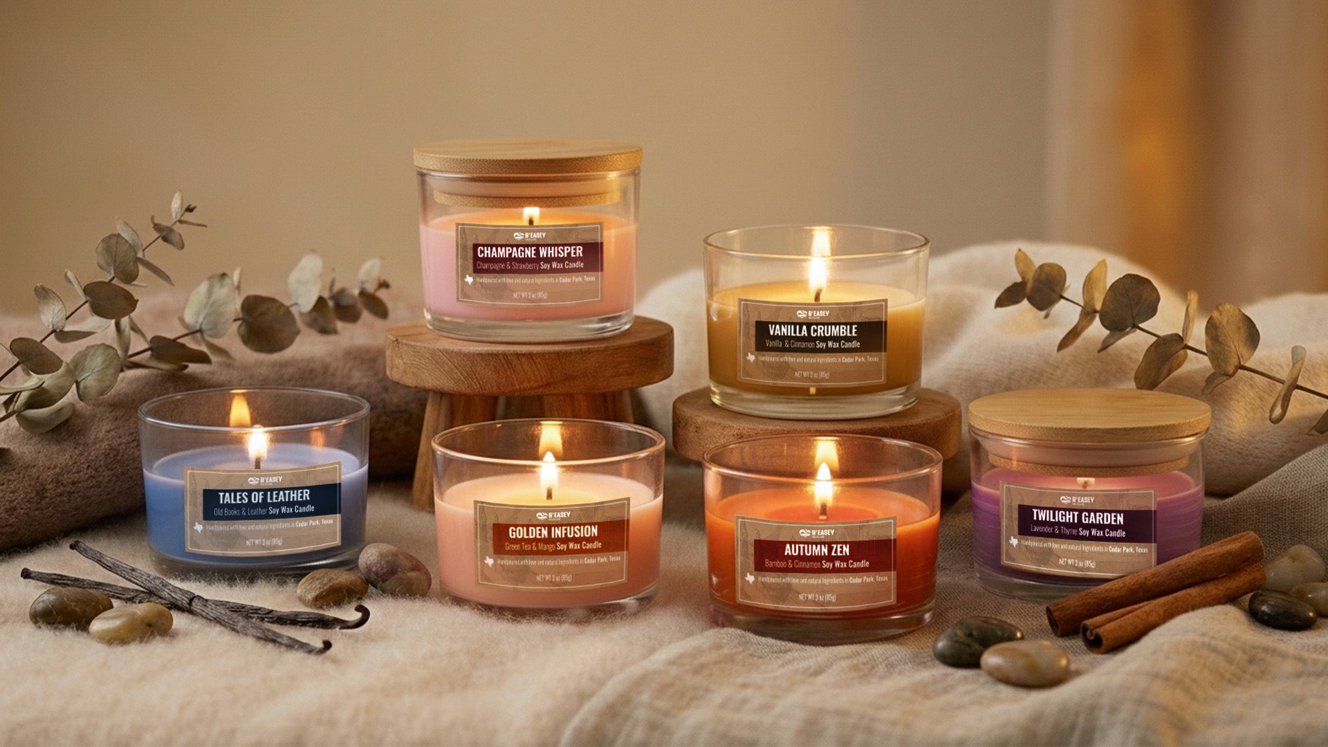 Encienda su espacio con mezclas cálidas y aromáticas diseñadas para calmar sus sentidos y crear el ambiente perfecto para la relajación.