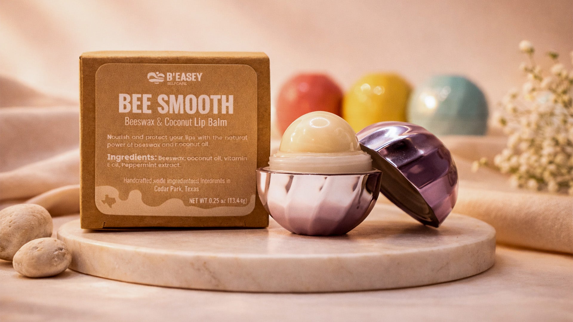 Handcrafted with pure beeswax and coconut oil, this balm locks in moisture while vitamin E and peppermint extract refresh and protect. Lightweight yet deeply conditioning, it glides on easily, leaving your lips soft with a natural sheen perfect for daily care, travel, or a moment of selfcare on the go.
